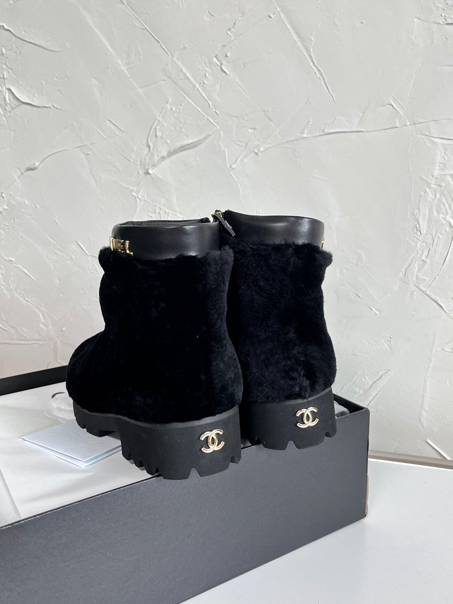 CC Interlocking CC Logo Boots Shearling Black Leather 543111