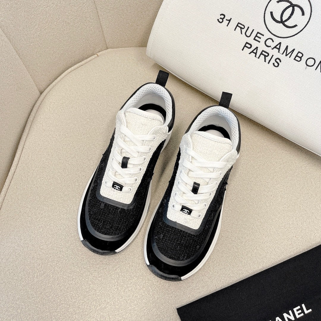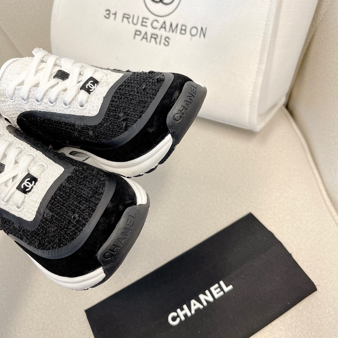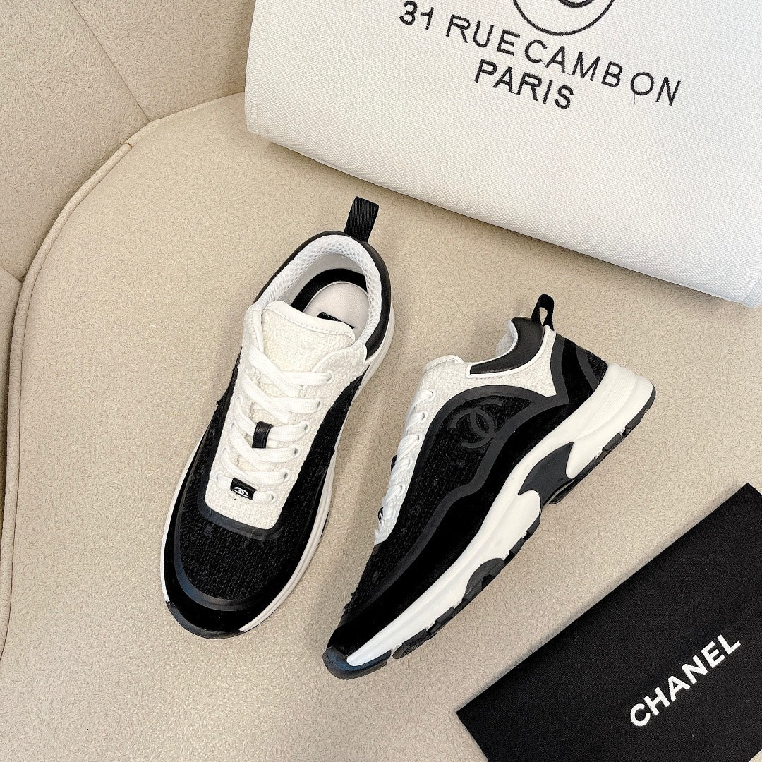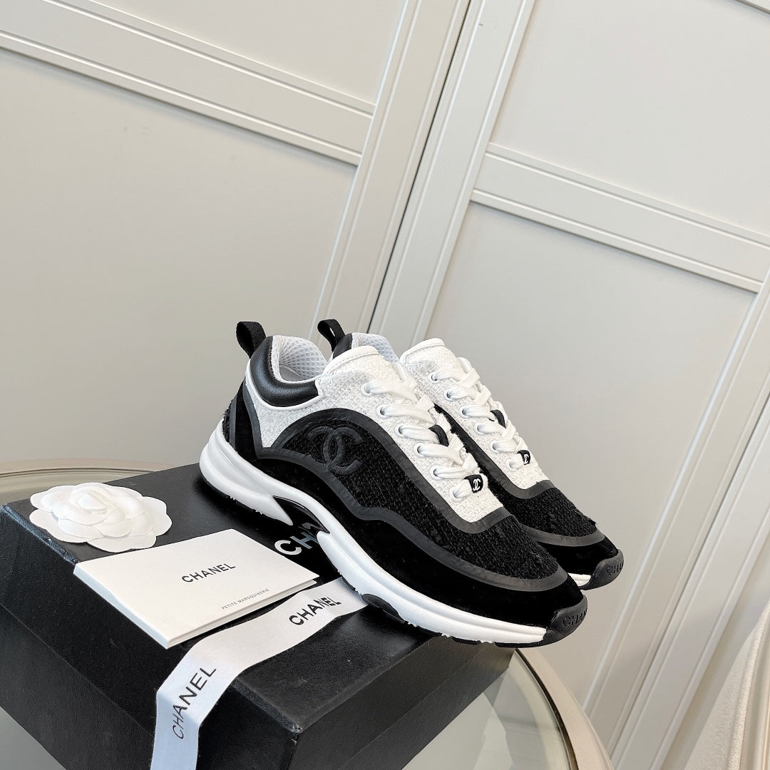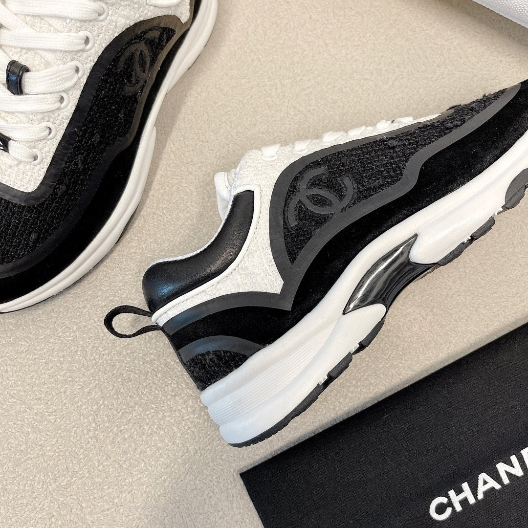 CC Low Top Sneakers Black & White Tweed Suede 527565
