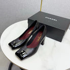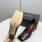 CC Square Toe Slingback Black Sheepskin Patent Leather 541131
