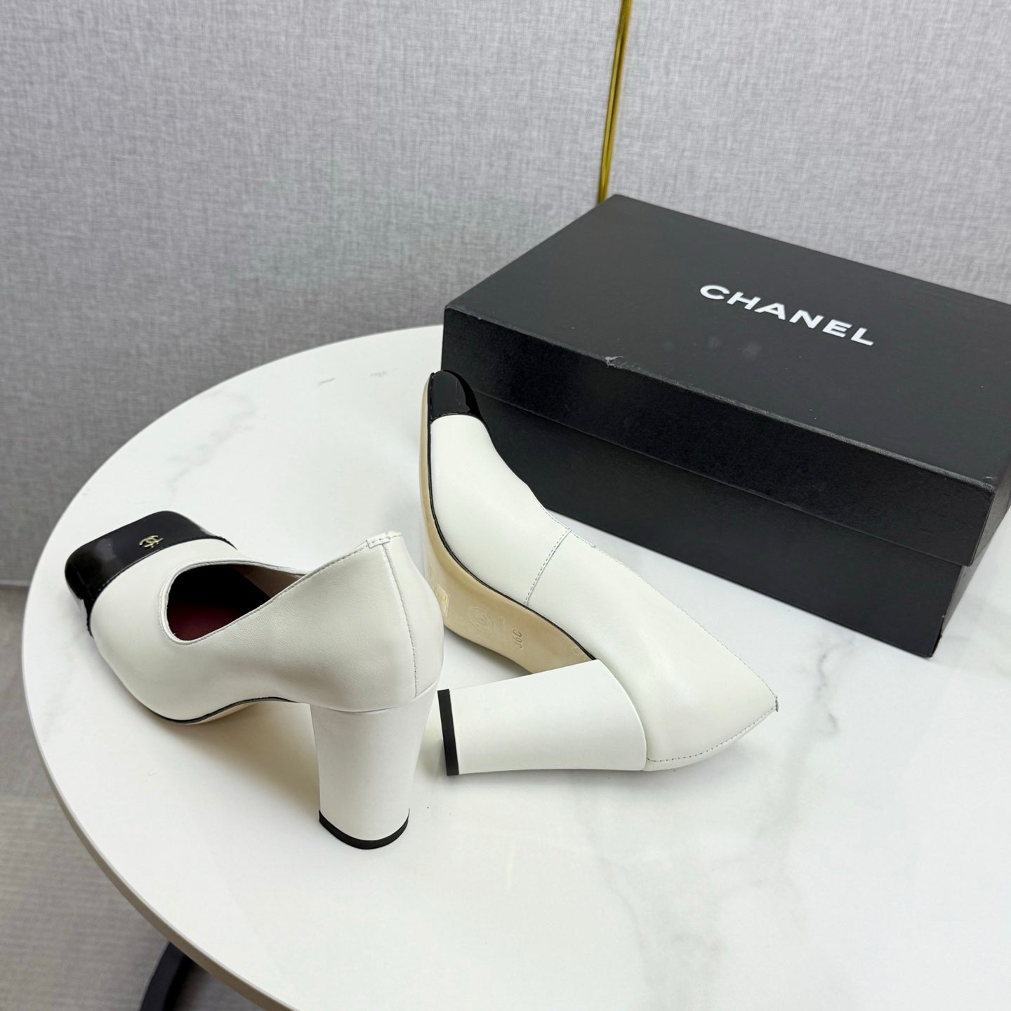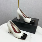 CC Square Toe Slingback Black White Sheepskin Patent Leather 541130