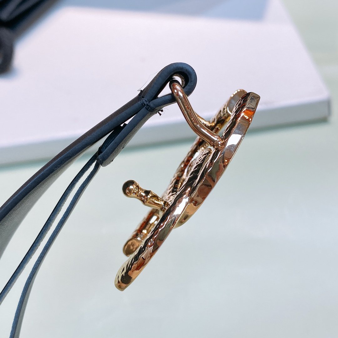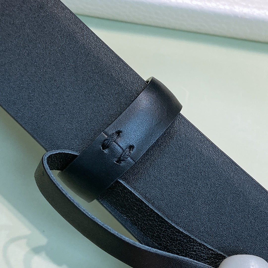 CC WOMEN'S BELT 3.0CM PINK GOLD BUCKLE LEATHER BLACK