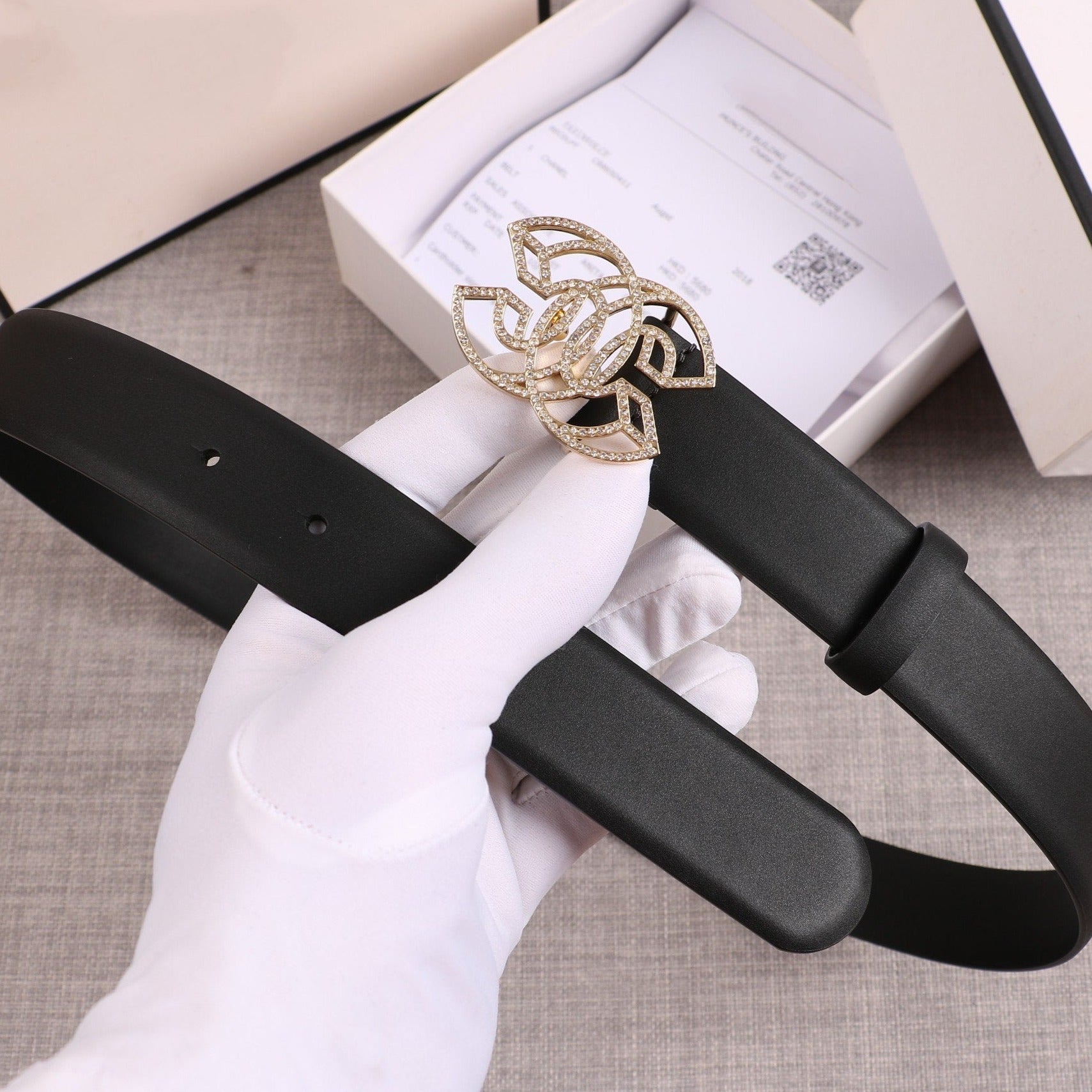 CC WOMEN'S BELT 30MM BUCKLE DIAMOND LEATHER BLACK