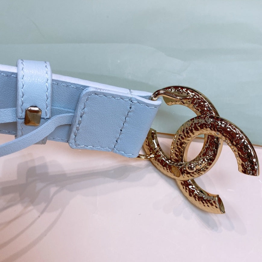CC WOMEN'S BELT 30MM BUCKLE PINK GOLD LEATHER WHITE