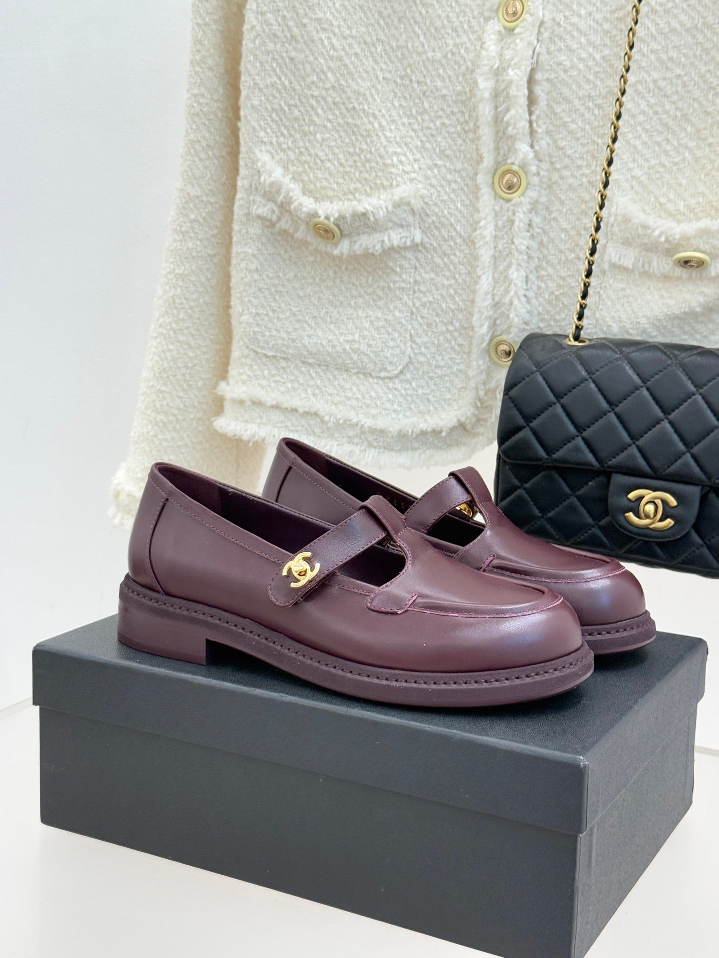 CCMary Jane Loafers CC Logo Buckle Burgundy Cowhide 512059