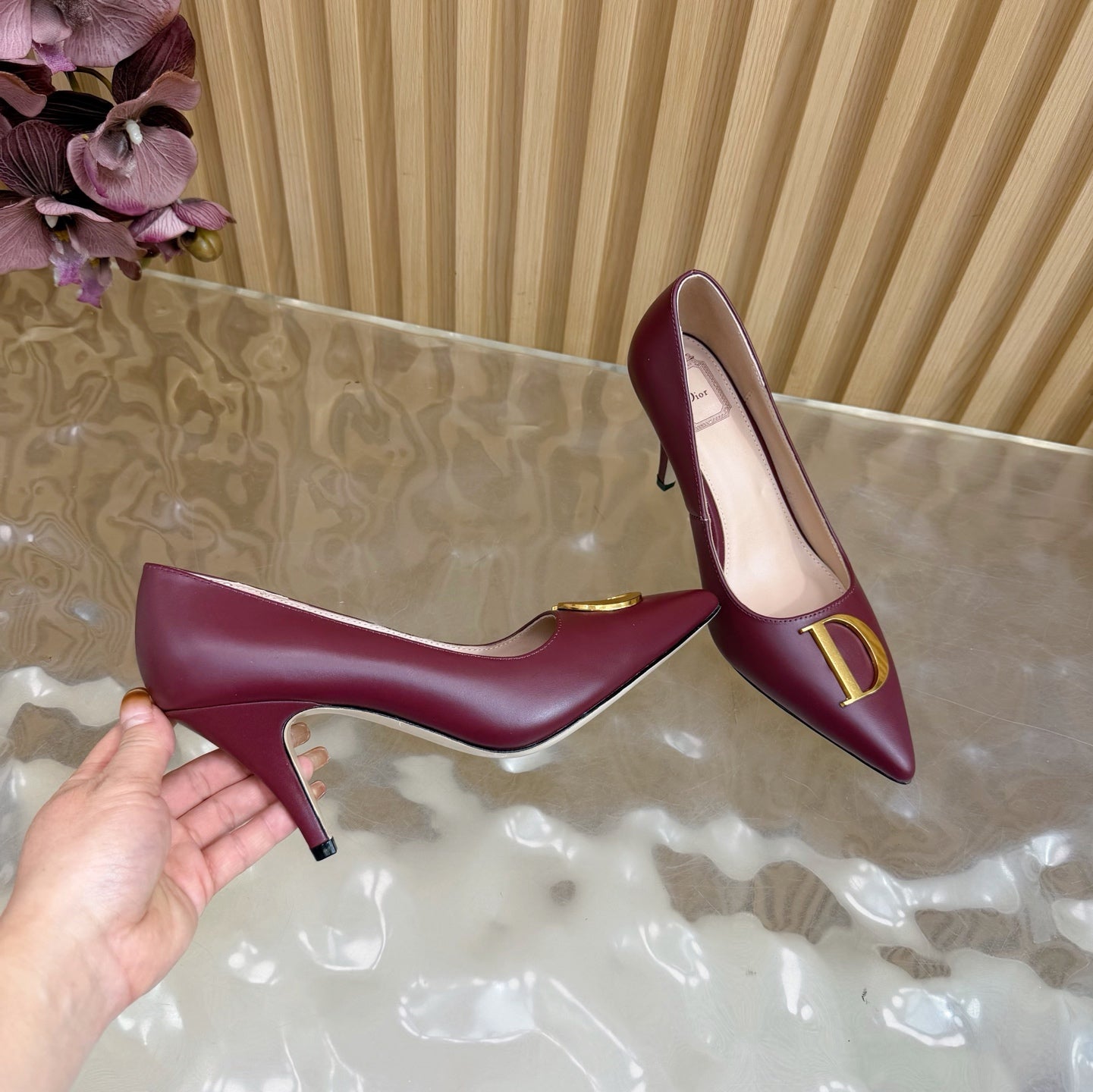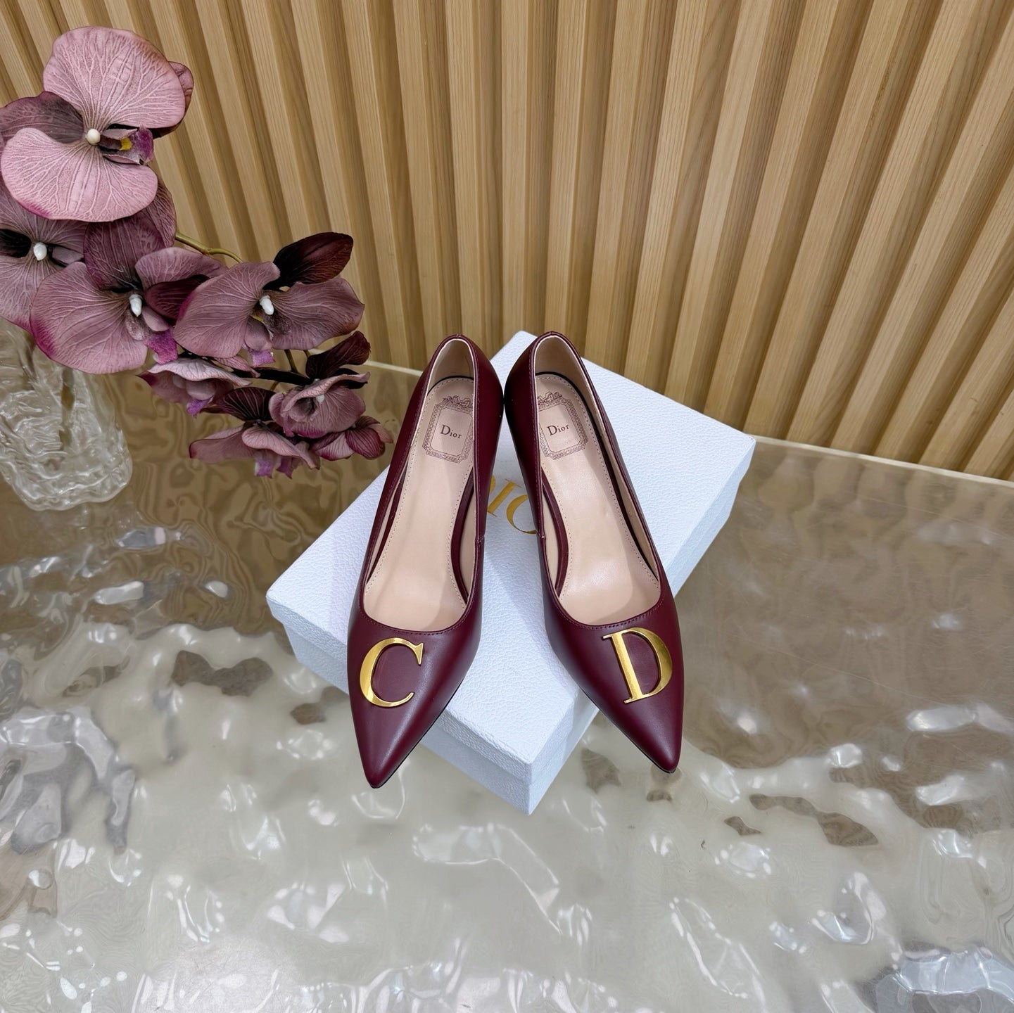 CD Buckle High-Heeled Elegant Shoes 85mm Burgundy Cowhide 537720