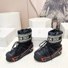 CD Snow Ankle Boots Black Red Cowhide Nylon Fabric 539658