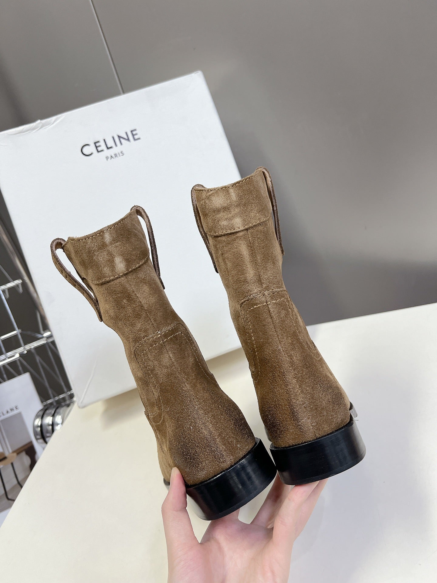 CELINE 25 cowboy boots light brown suede 434411