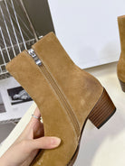 CELINE 25 Cowboy Boots Light Brown Suede 434415