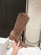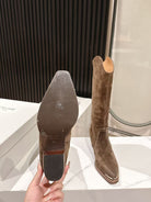 CELINE 25 Mid Calf Cowboy Boots Dark Brown Suede