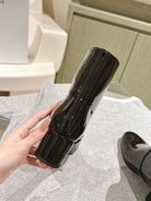 CELINE Les Bottes Triomphe Zipped Boot Black Patent Calfskin 452697