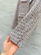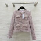 Chanel 2025 Rhinestone Chain Jacket Pink Woven Tweed Fabric 319510