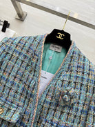 Chanel 2025 V-Neck Coat Blue Green Wool Tweed Fabric 319506
