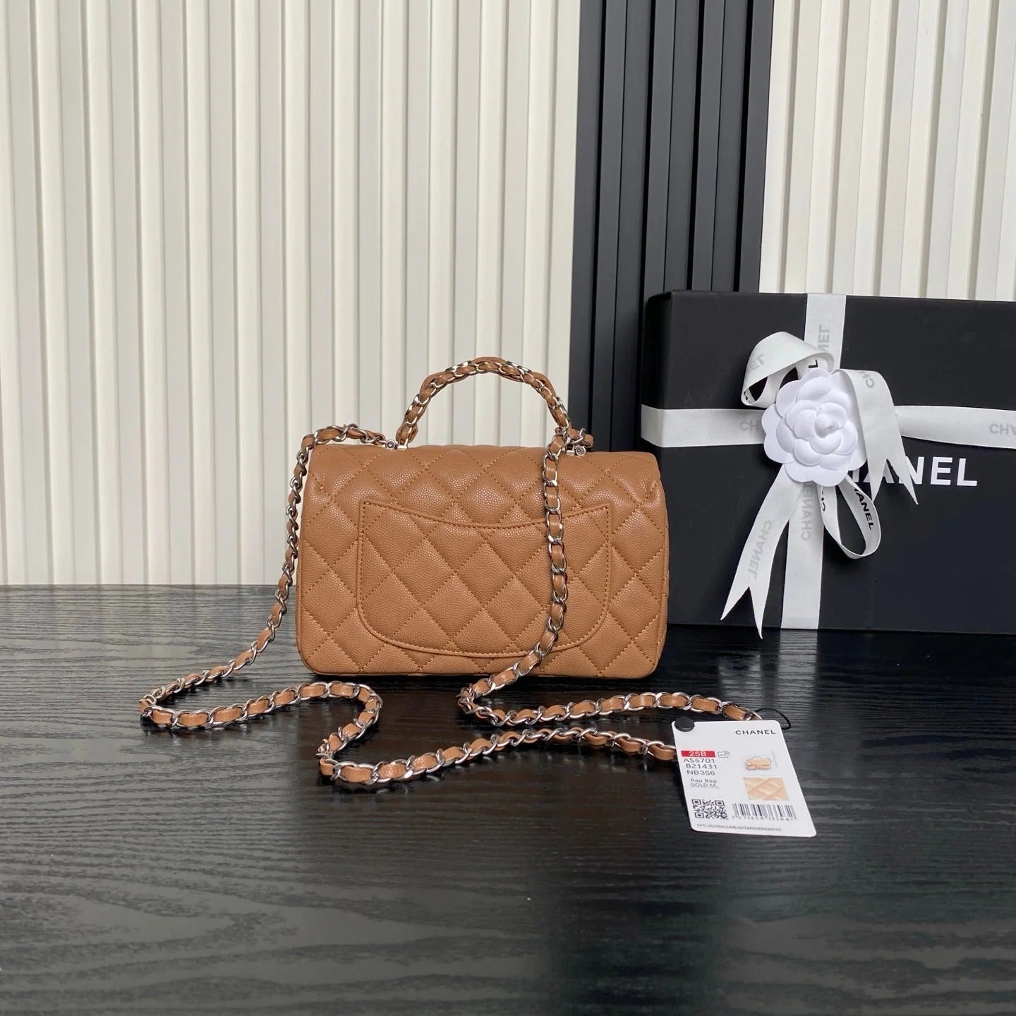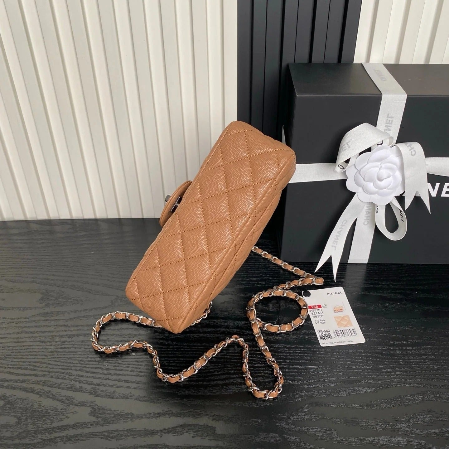 CHANEL 25S FLAP BAG 19 IN CARAMEL CALFSKIN SILVER HARDWARE
