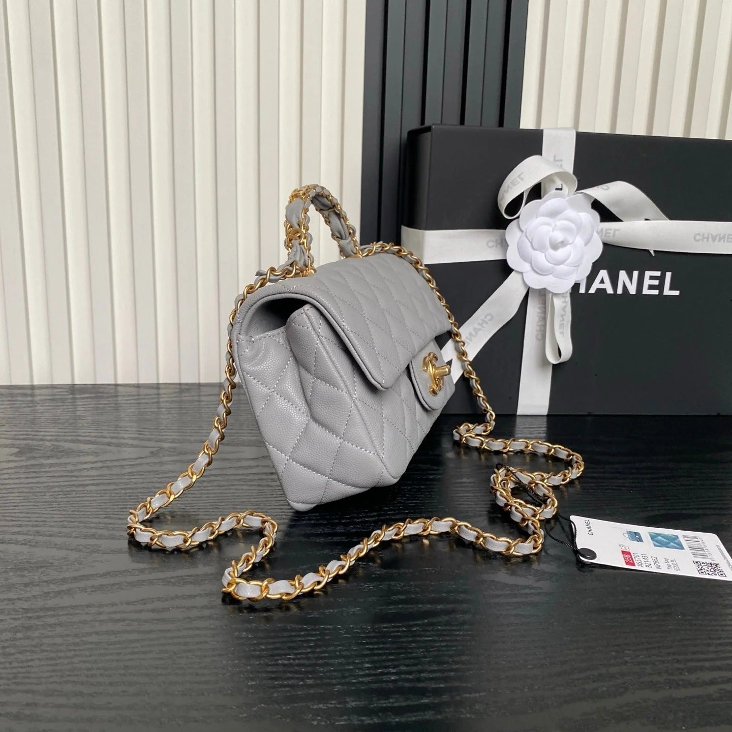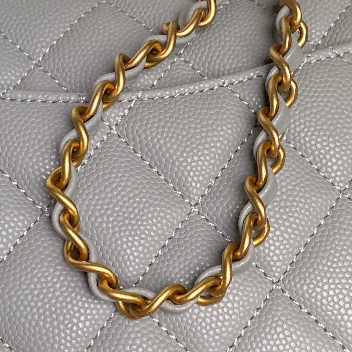 CHANEL 25S FLAP BAG 19 IN CHARCOAL GRAY CALFSKIN GOLD HARDWARE