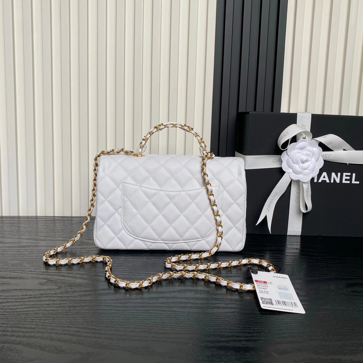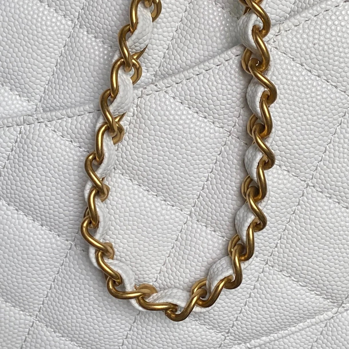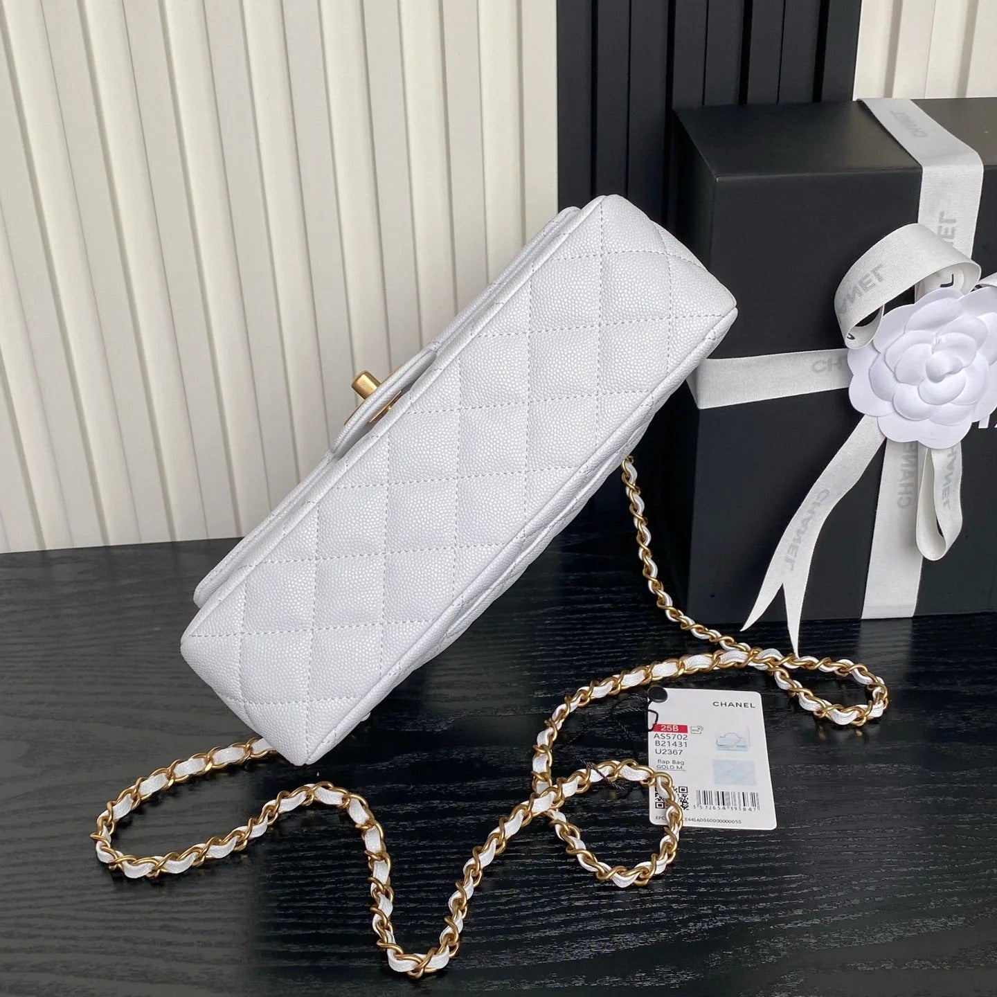 CHANEL 25S FLAP BAG 22 IN WHITE CALFSKIN GOLD HARDWARE