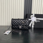 CHANEL 25S FLAP BAG 23 IN BLACK CALFSKIN SILVER HARDWARE