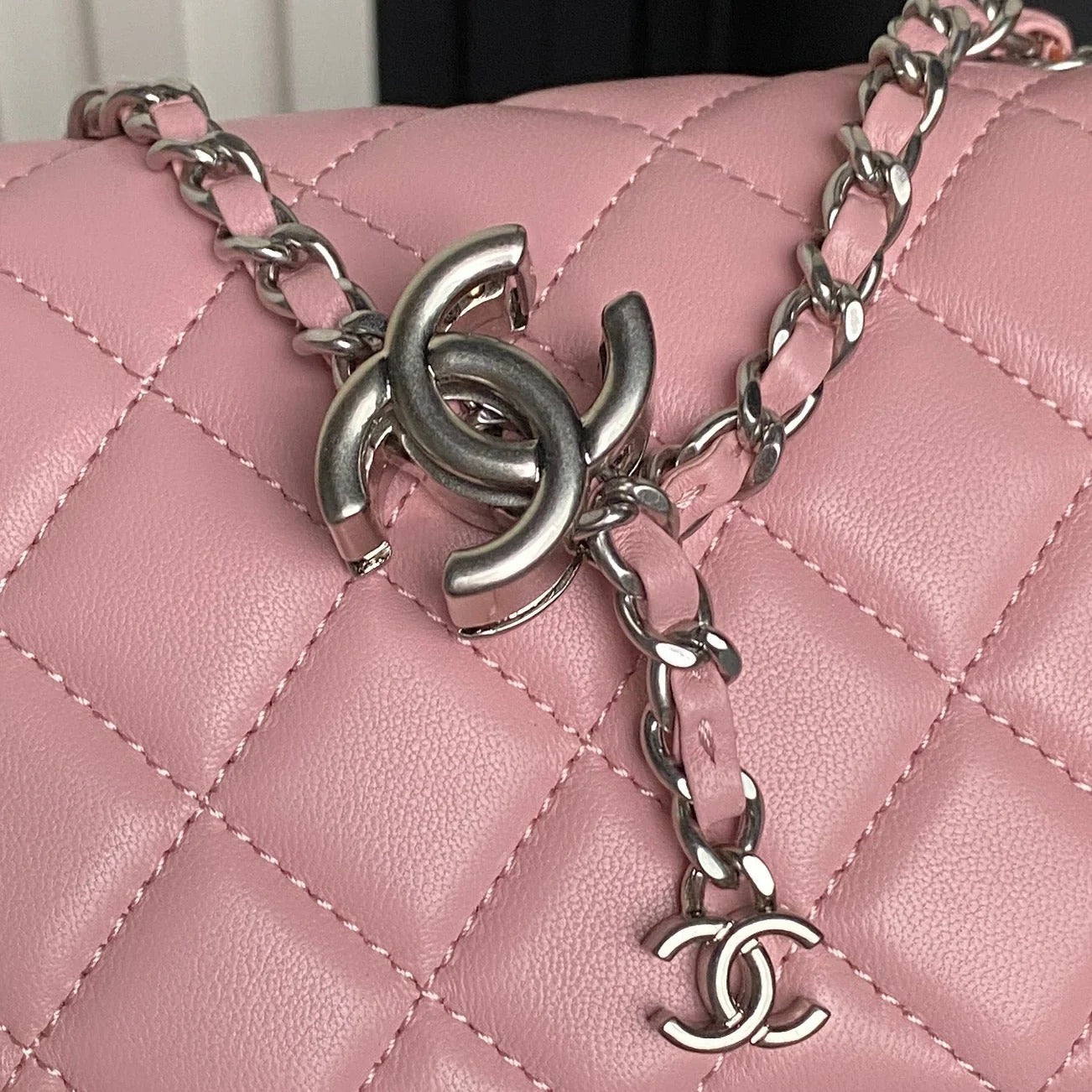 CHANEL 25S FLAP BAG 23 IN LIGHT PINK CALFSKIN SILVER HARDWARE