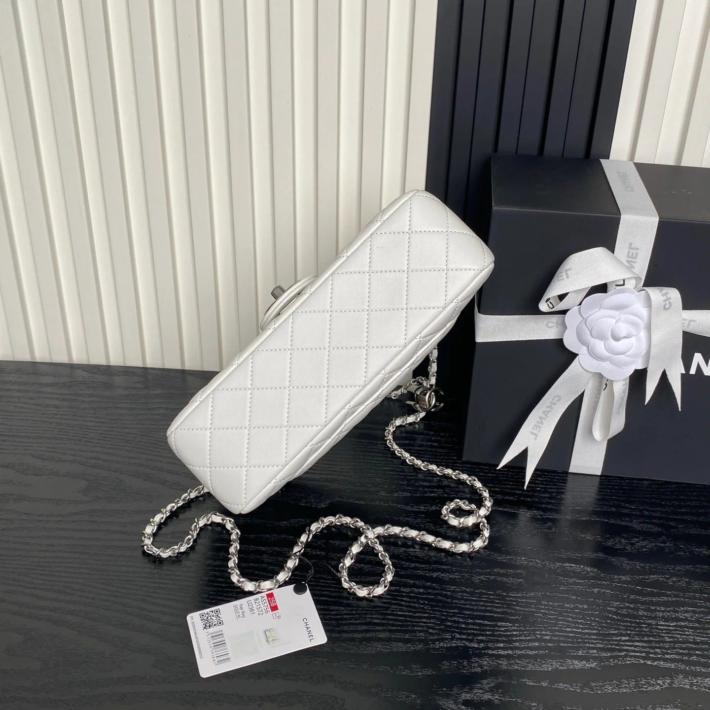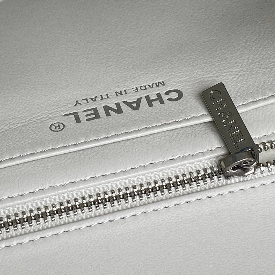CHANEL 25S FLAP BAG 23 IN WHITE CALFSKIN SILVER HARDWARE