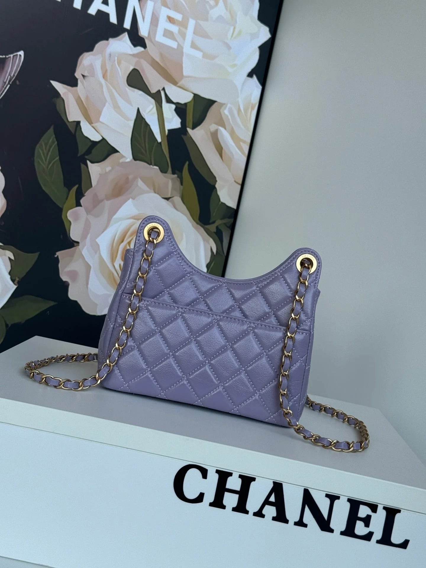 CHANEL 25S HOBO BAG 19 CM IN PURPLE LAMBSKIN WITH GOLD HARDWARE