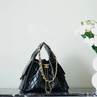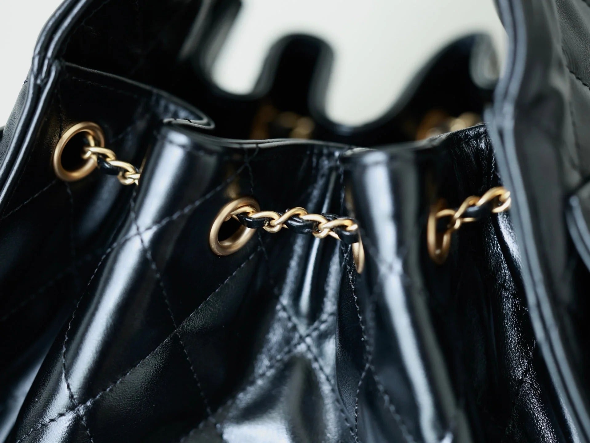 CHANEL 25S HOBO BAG 30 CM IN BLACK LIGHT GLOSSY LEATHER WITH GOLD HARDWARE