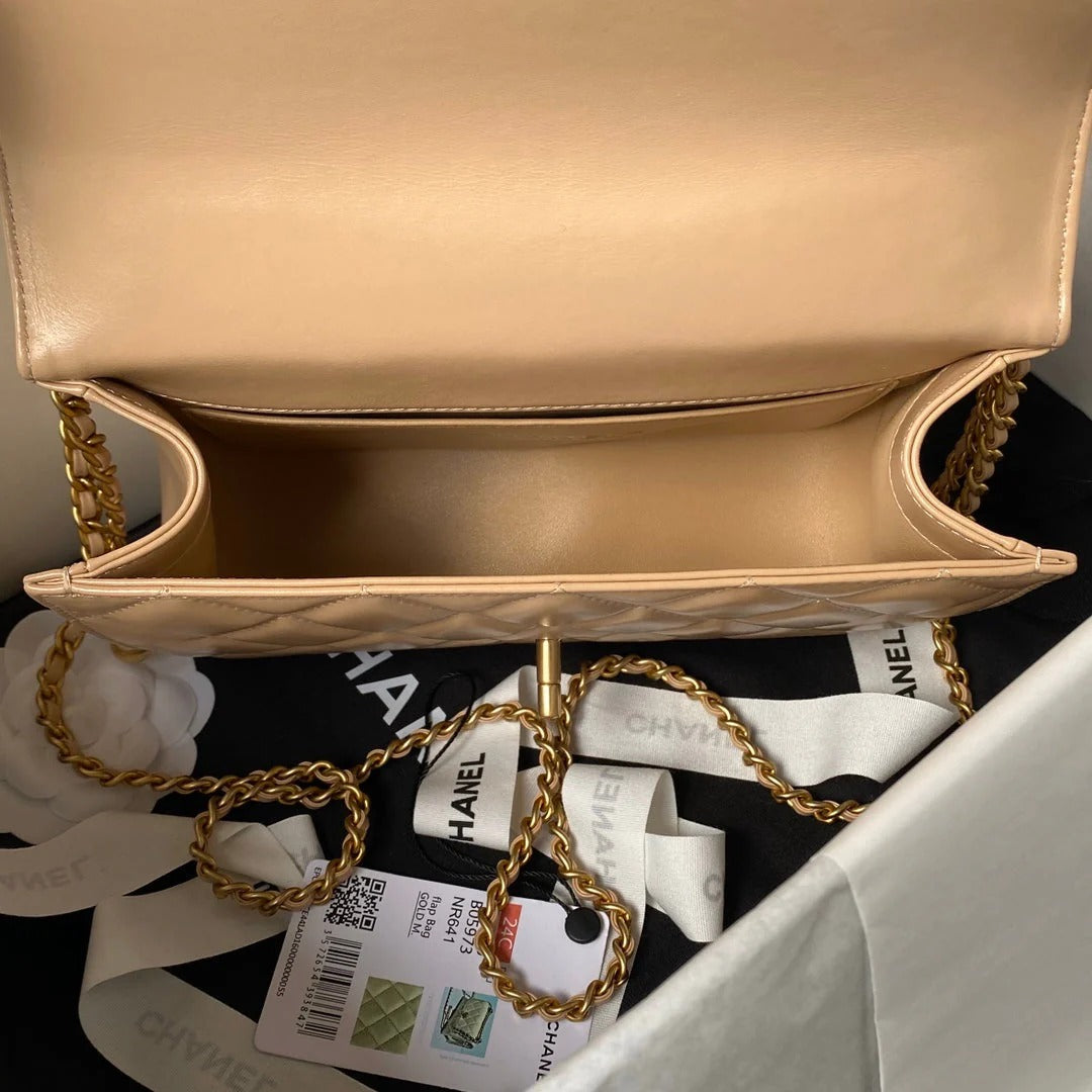 CHANEL 25S MINI FLAP BAG 22 IN TAN BROWN CALFSKIN GOLD HARDWARE