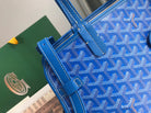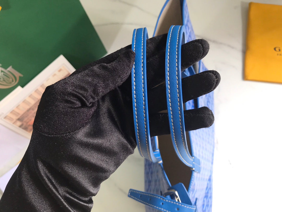 CHIEN GRIS BAG 33 IN SAPPHIRE BLUE GOYARDINE CANVAS AND TAN CALFSKIN TRIM