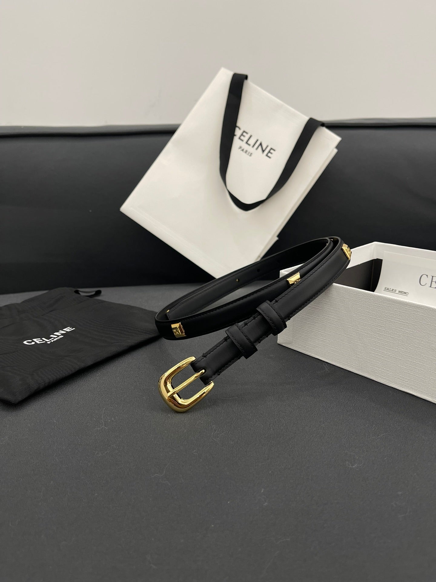 CL SMALL 18 MM TRIOMPHE BELT IN TAURILLON BLACK LEATHER GOLD HARDWARE