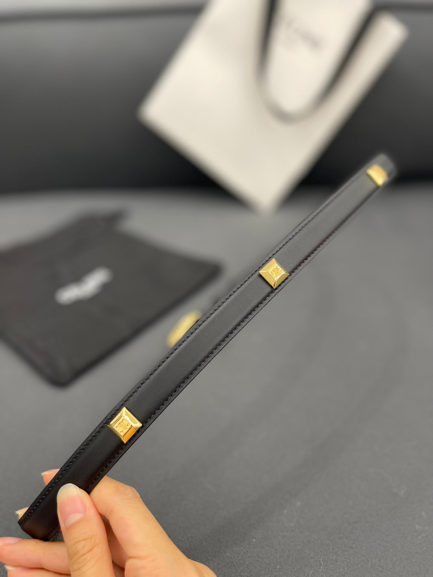 • Gold - toned hardware