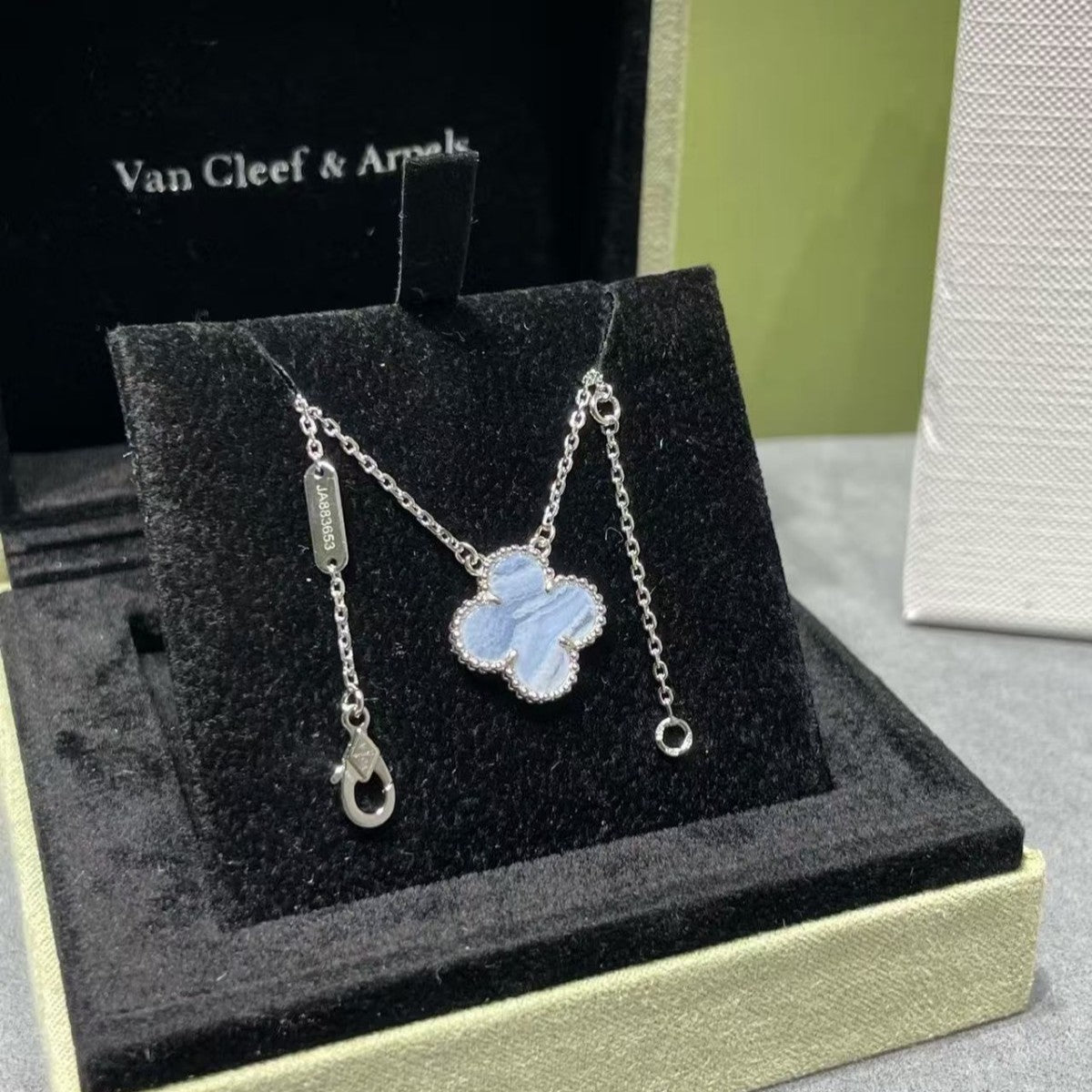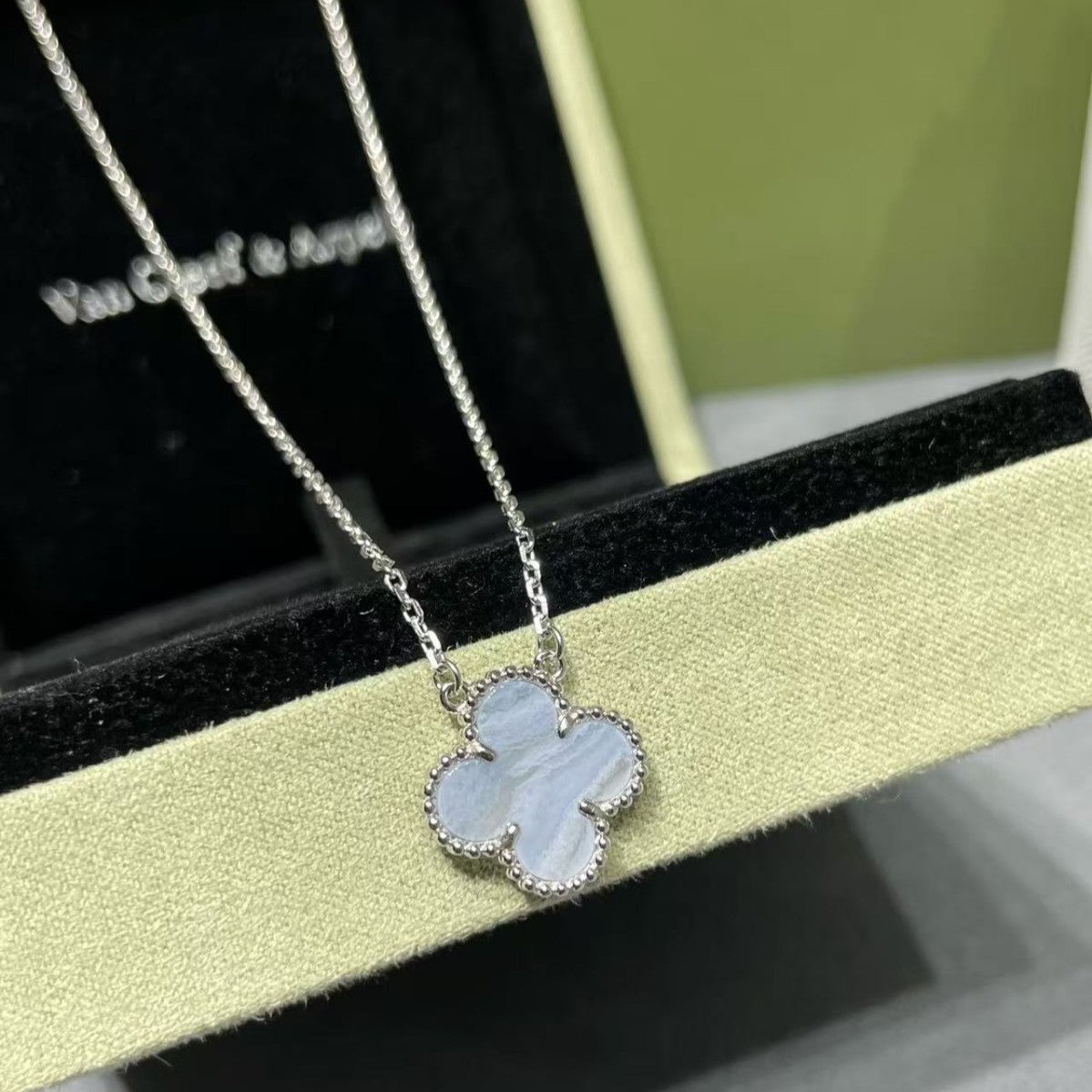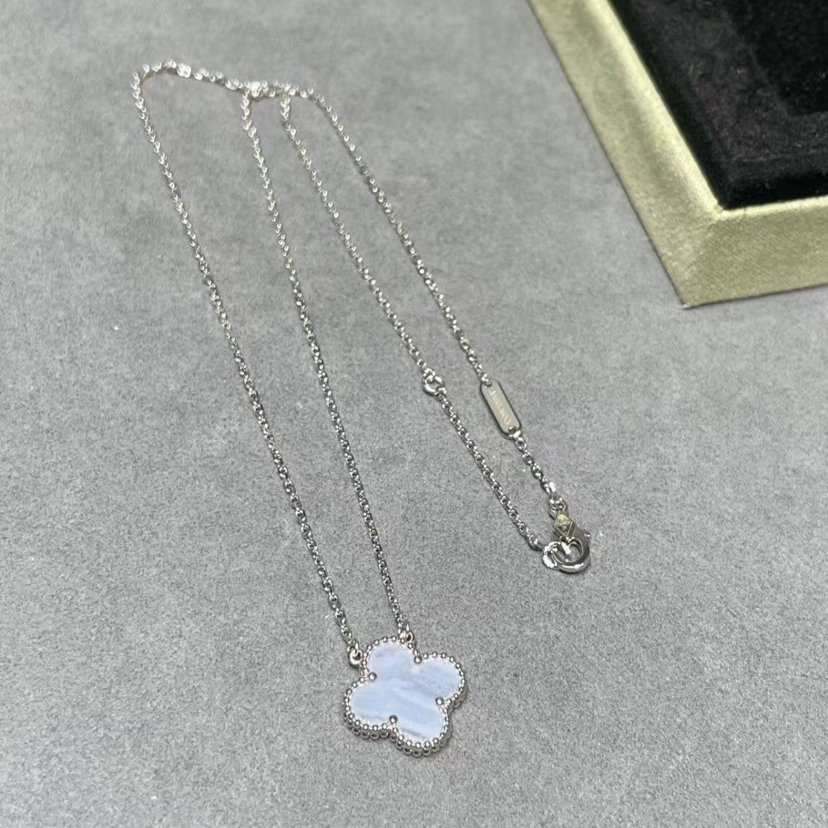 CLOVER 1 MOTIF SILVER CHALCEDONY NECKLACE