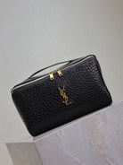 COMESTIC POUCH IN BLACK LAMBSKIN GOLD LOGO