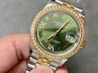 DATEJUST 36MM GOLD STEEL DIAMOND BEZEL GREEN DIAL