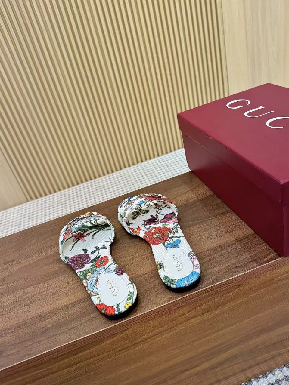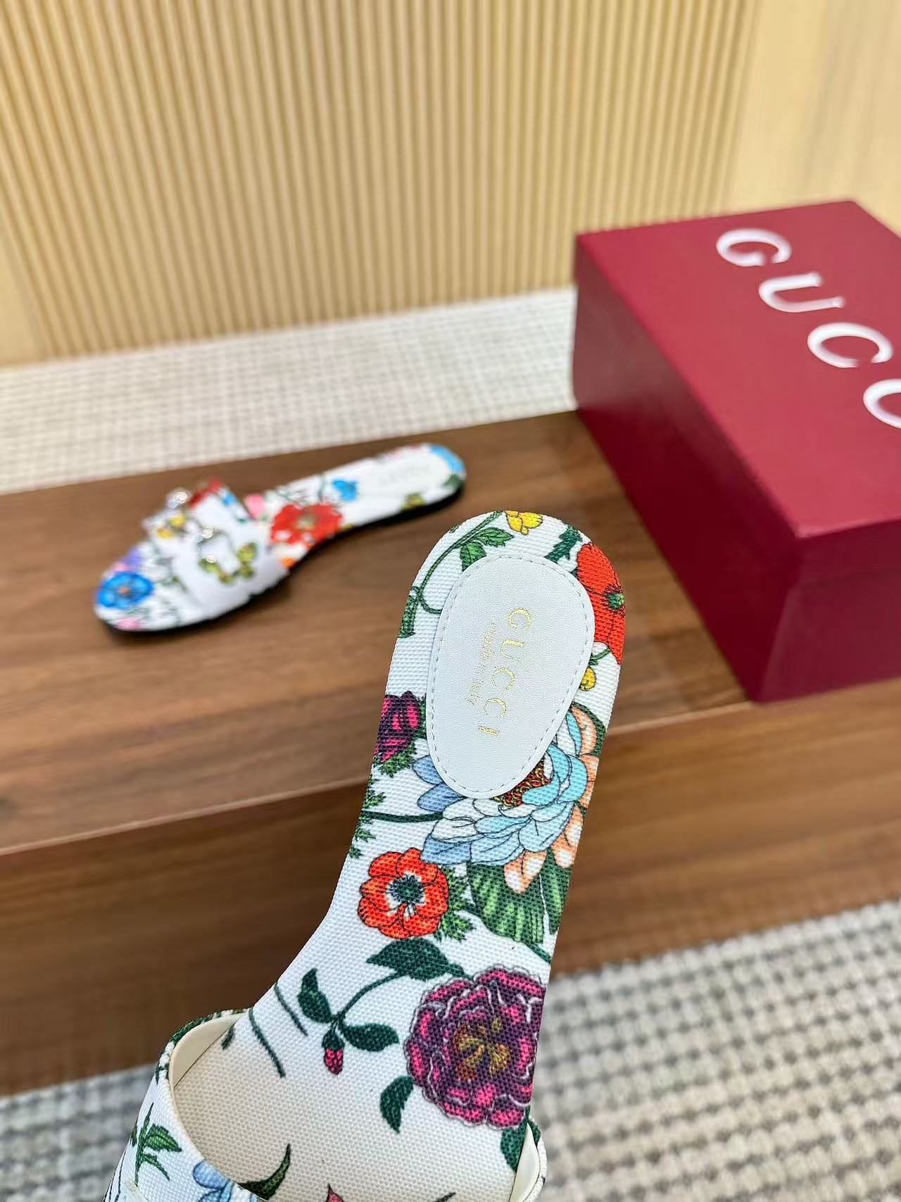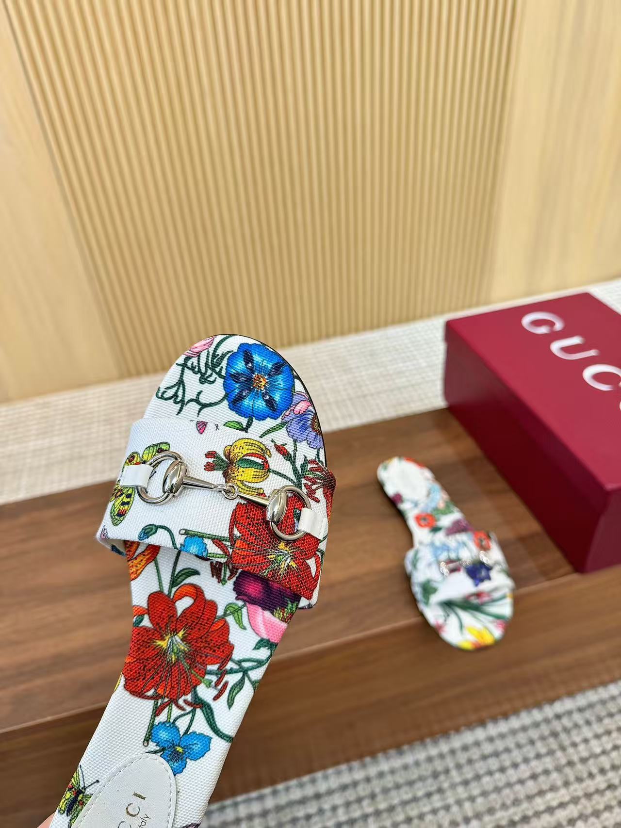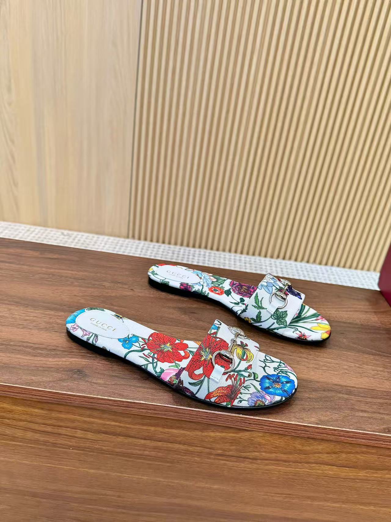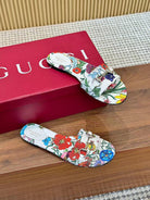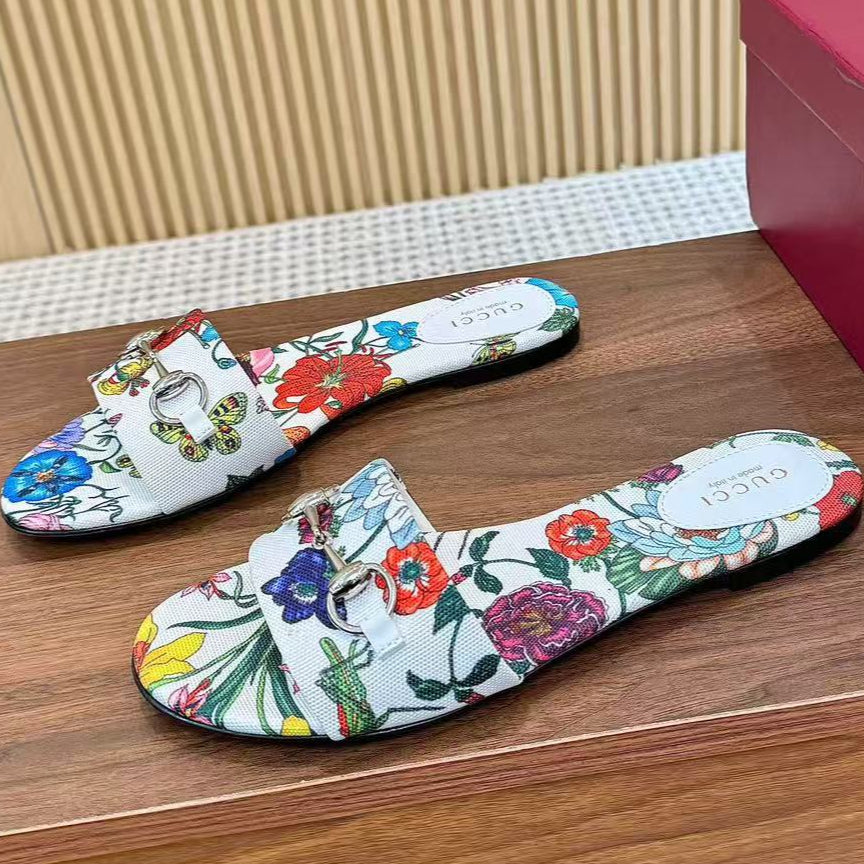GC 25 Floral Slide Sandal with Horsebit White and Multicolor Canvas