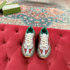 GG RHYTON TRAINER LIGHT GRAY AND SCARLET CALFSKIN