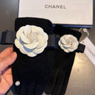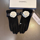 GLOVES IN BLACK WOOL WITH WHITE FLOWER 456326