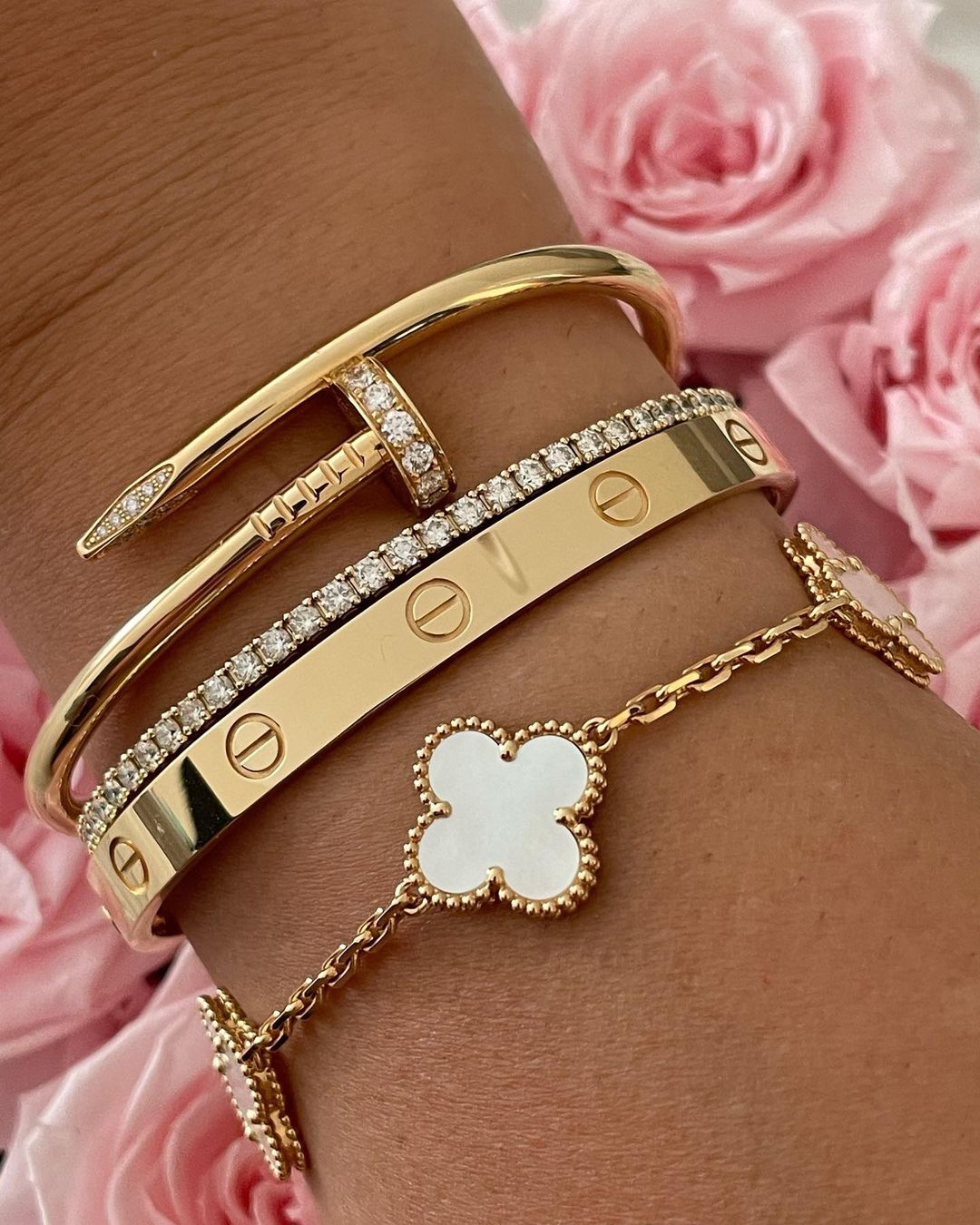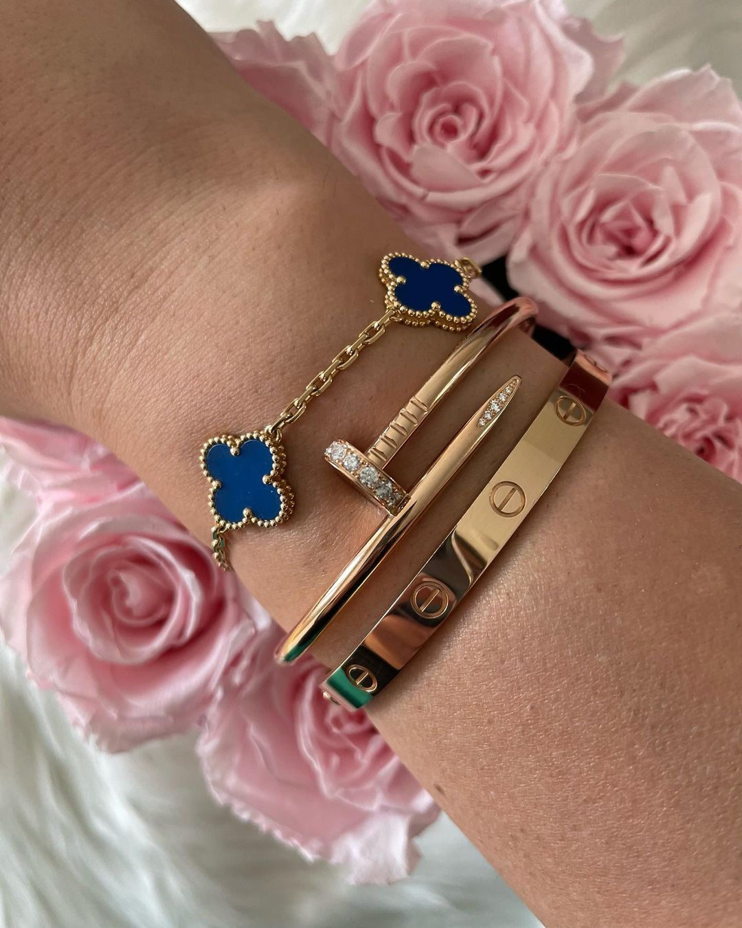 For LOVE bracelet, the usual bracelet sizing rules differ slightly due to the design of the bracelet. We recommends adding one centimeter for a tight fit and two centimeters for a looser fit.
