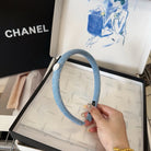 HEADBAND IN SKY BLUE TWEED CRYSTALS LOGO 407888