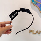 HEADBAND WITH BOW IN BLACK COTTON ATTACHED PEARLS 406039