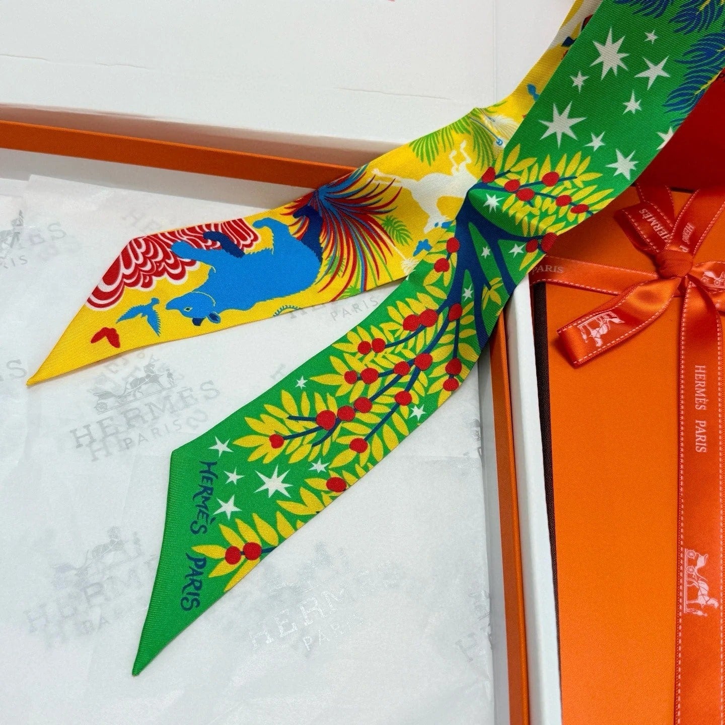 HERMES 25S SILK NECKERCHIEF 86 IN SILK 714355