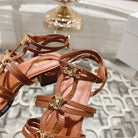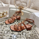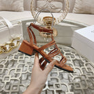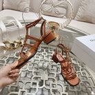HIGH 45MM BLOCK HEEL SANDAL IN RUSSET BROWN LAMBSKIN