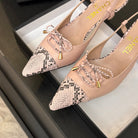 HIGH HEEL SLINGBACKS 65 MM IN BABY PINK WITH SNAKESKIN PATTERN LAMBSKIN
