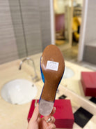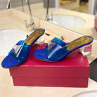HIGH MULE 60MM IN COBALT BLUE SHEEPSKIN AND TRANSPARENT PVC