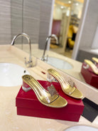 HIGH MULE 60MM IN GOLD SHEEPSKIN AND TRANSPARENT PVC