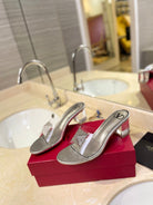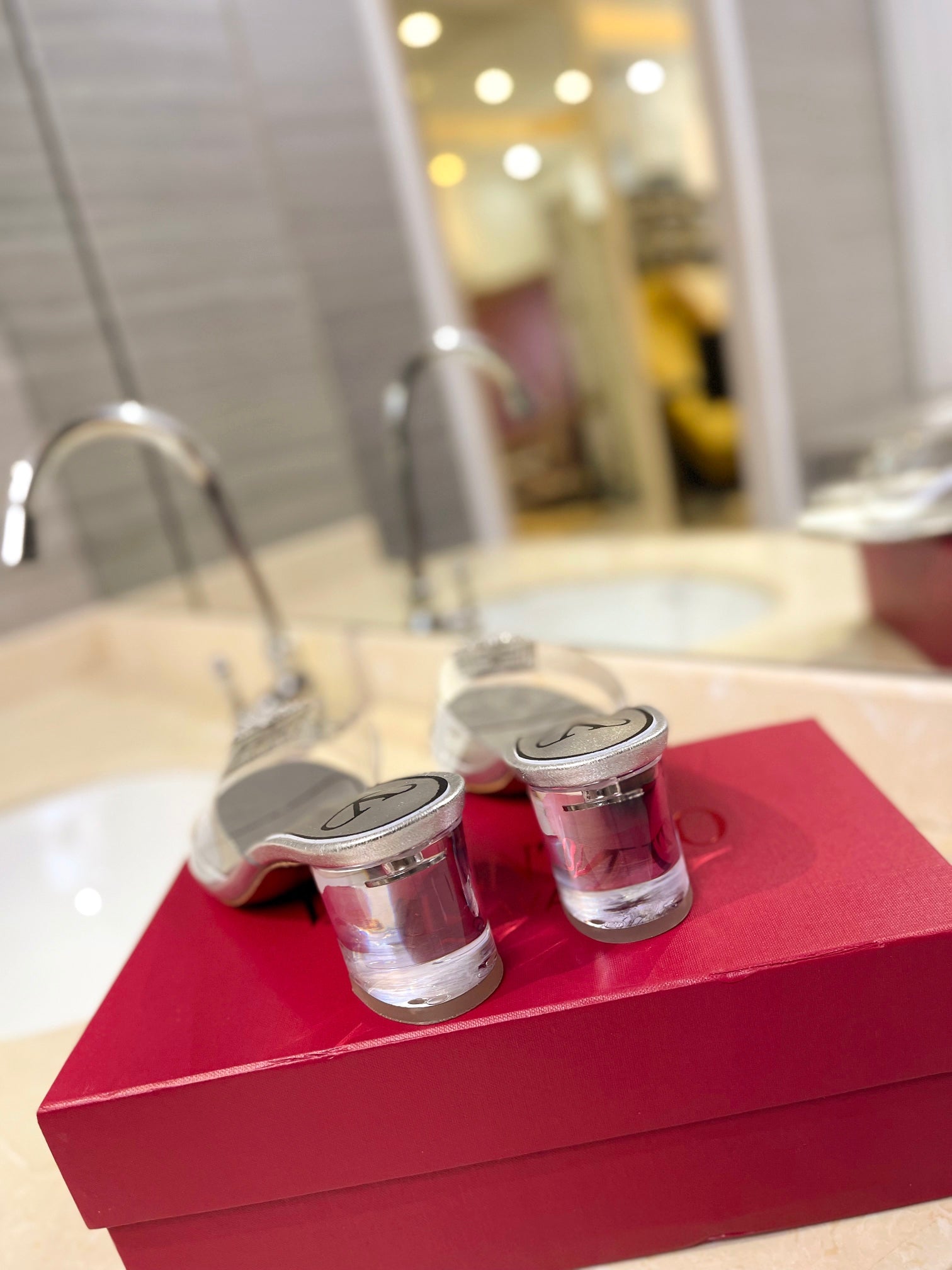 HIGH MULE 60MM IN SILVER SHEEPSKIN AND TRANSPARENT PVC