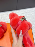 HM 25s H Shaped Slipper with Buckle Red Shearling 462198