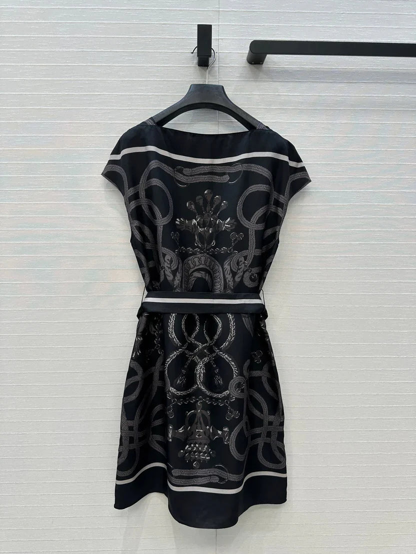 HM 25S Palefroi Remix Sleeveless Dress Graphic Print in Black Silk