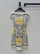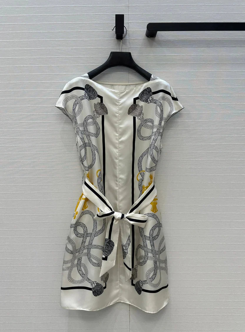 HM 25S Palefroi Remix Sleeveless Dress Graphic Print in White Silk