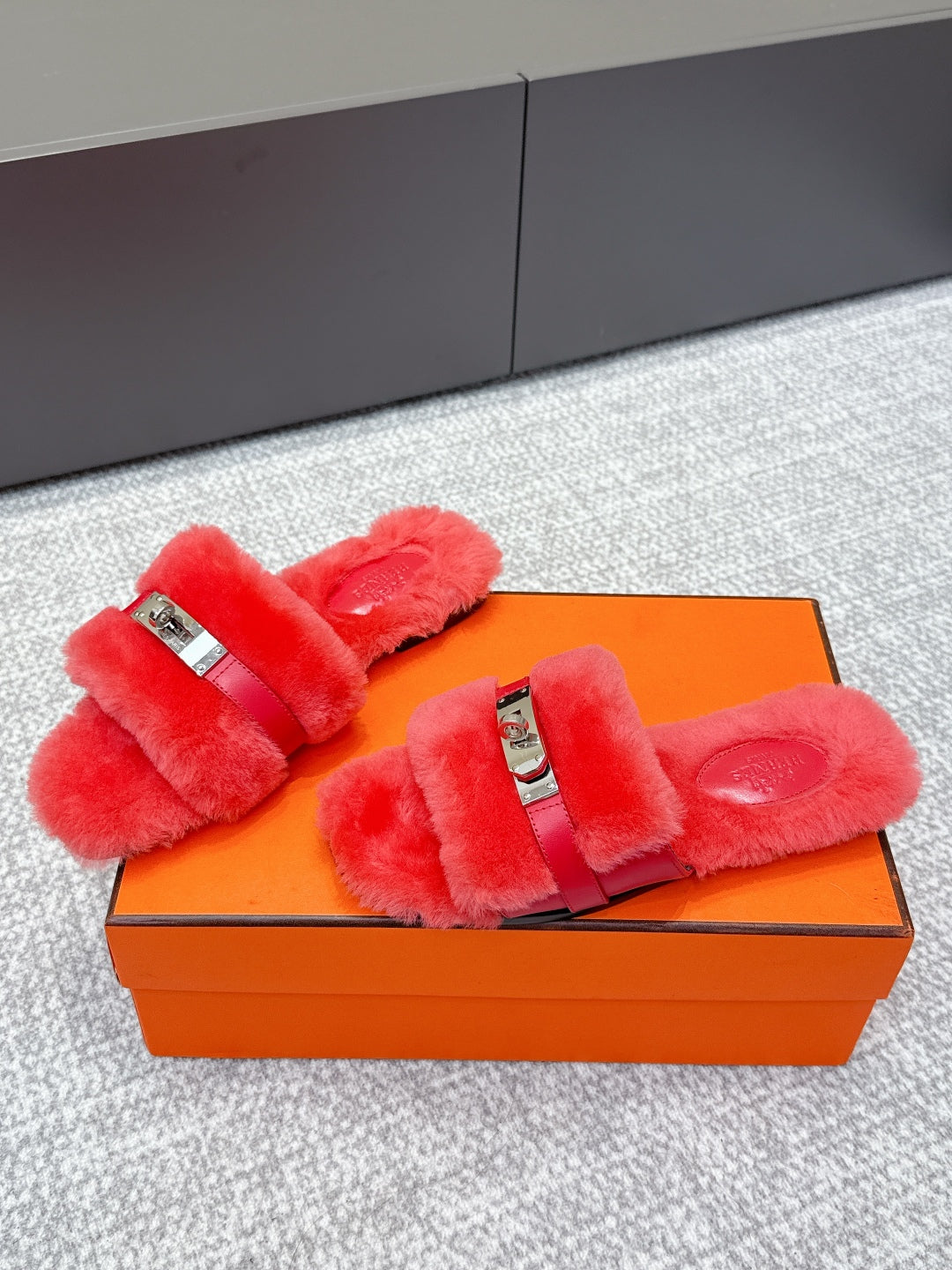 HM 25s Slipper with Buckle Red Fur 462200
