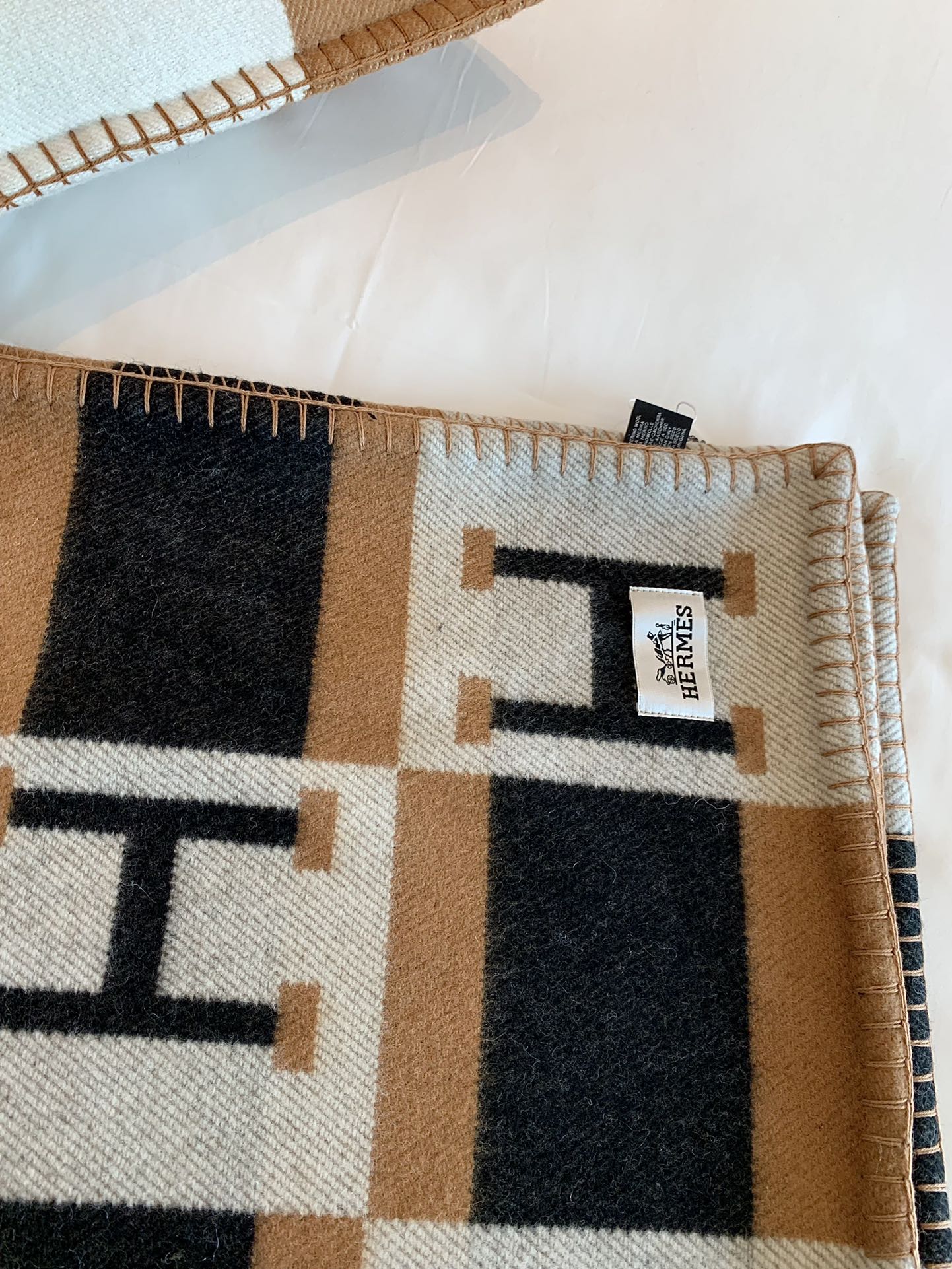 HM Avalon Throw Blanket Brown Black Wool Cashmere