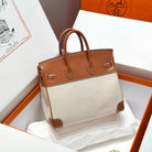 HM Birkin 25cm Golden Brown Swift Cowhide With Beige Canvas Fabric Shw 249989