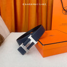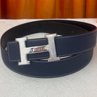 HM Silver Buckle H Belt 38mm Navy Blue Calfskin 187182